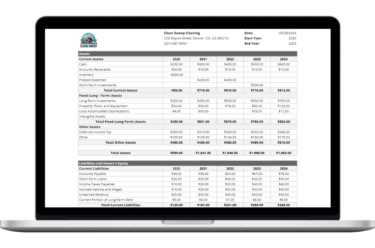 Our carpet cleaning balance sheet template features: