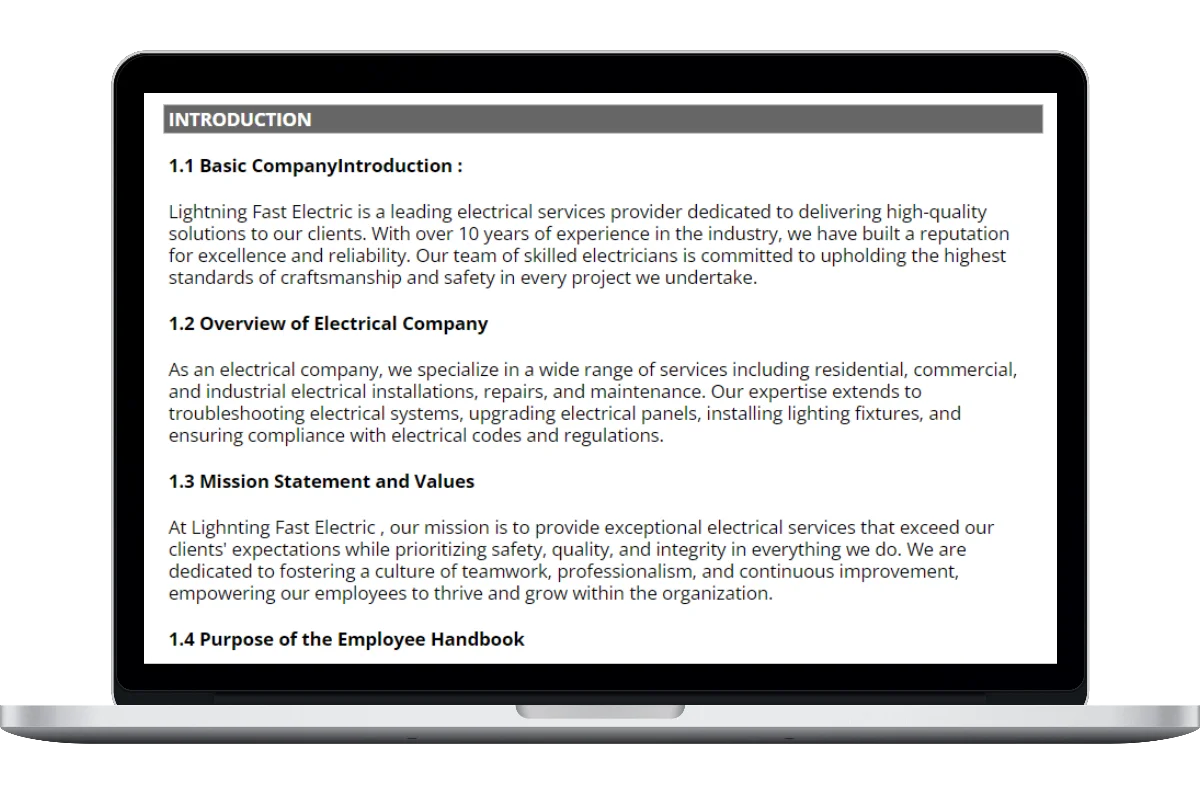 Here’s everything included in our electrical employee handbook template