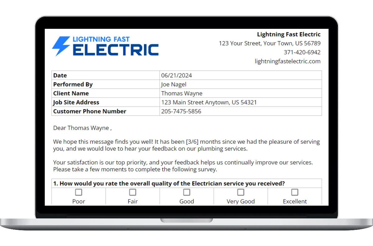 Creating accurate and thorough customer follow up is essential for any electrical company. Having a simple, straightforward customer follow up template makes it a whole lot easier.