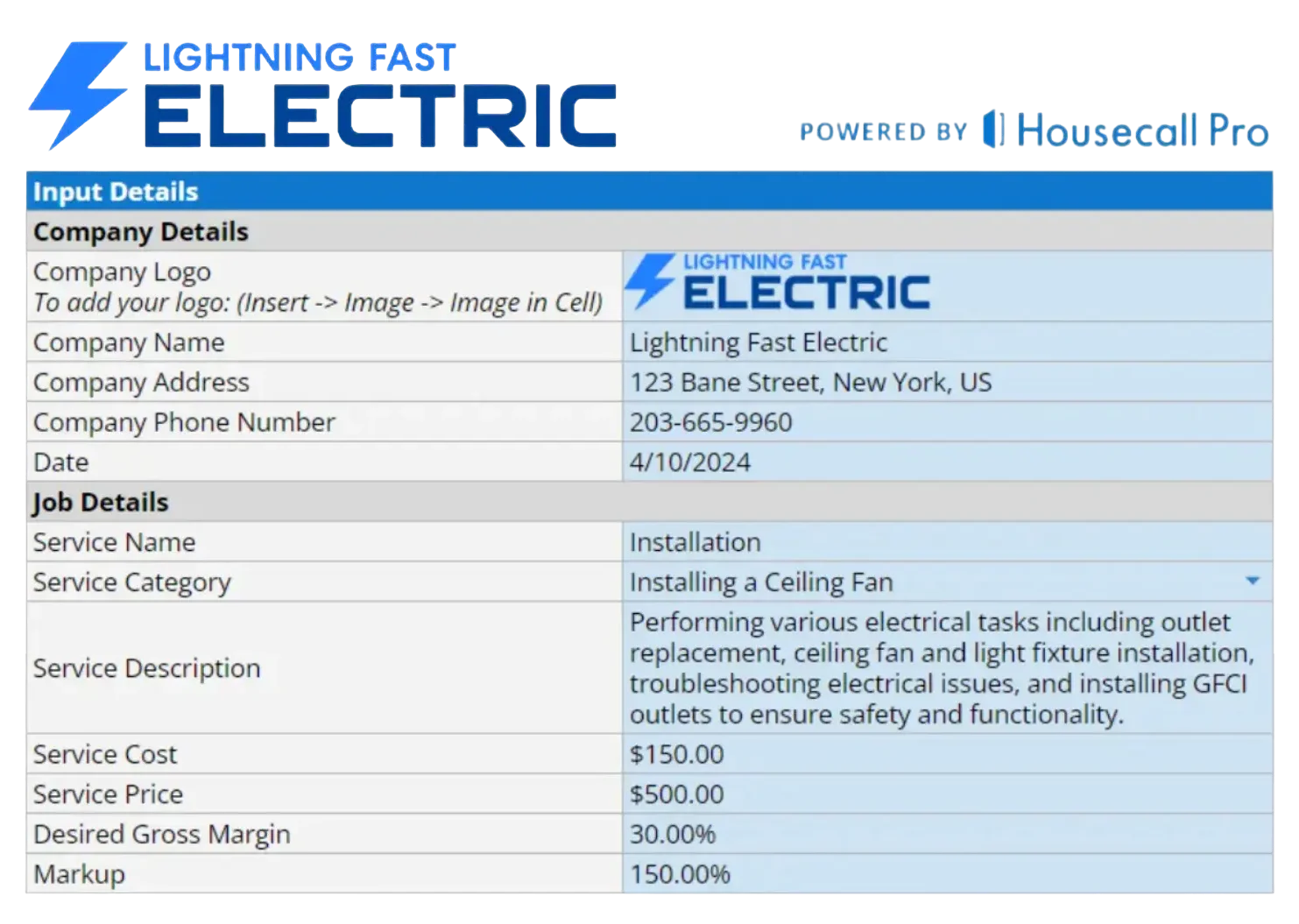 Creating accurate and thorough pricing is essential for any electrical company. Having a simple, straightforward flat-rate template makes it a whole lot easier.