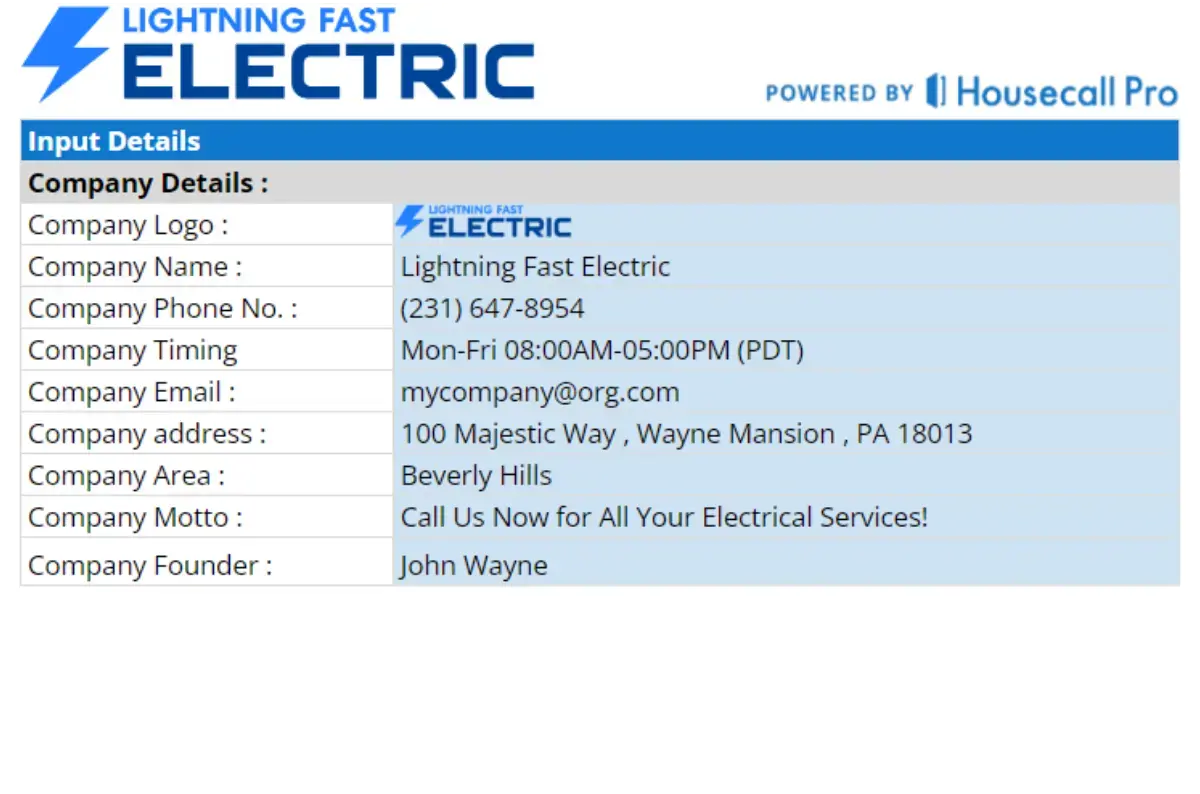 Simplify creating a website for your electrical company with a free downloadable template. Capture every detail, look professional, and keep accurate records.