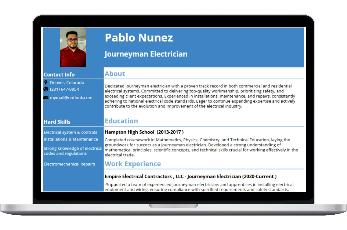 Here’s everything included in our journeyman electrical resume template