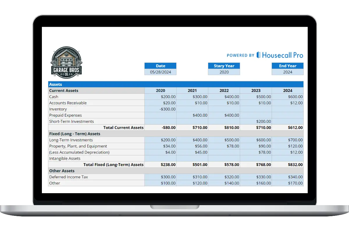 Built for Pros: Free balance sheet template from Housecall Pro