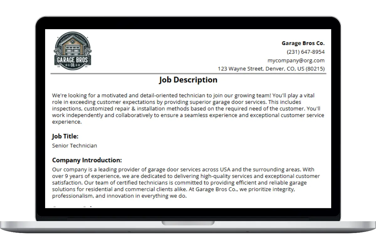 This garage door job description template is a quick and easy way to make job descriptions, save time and ensure consistency.