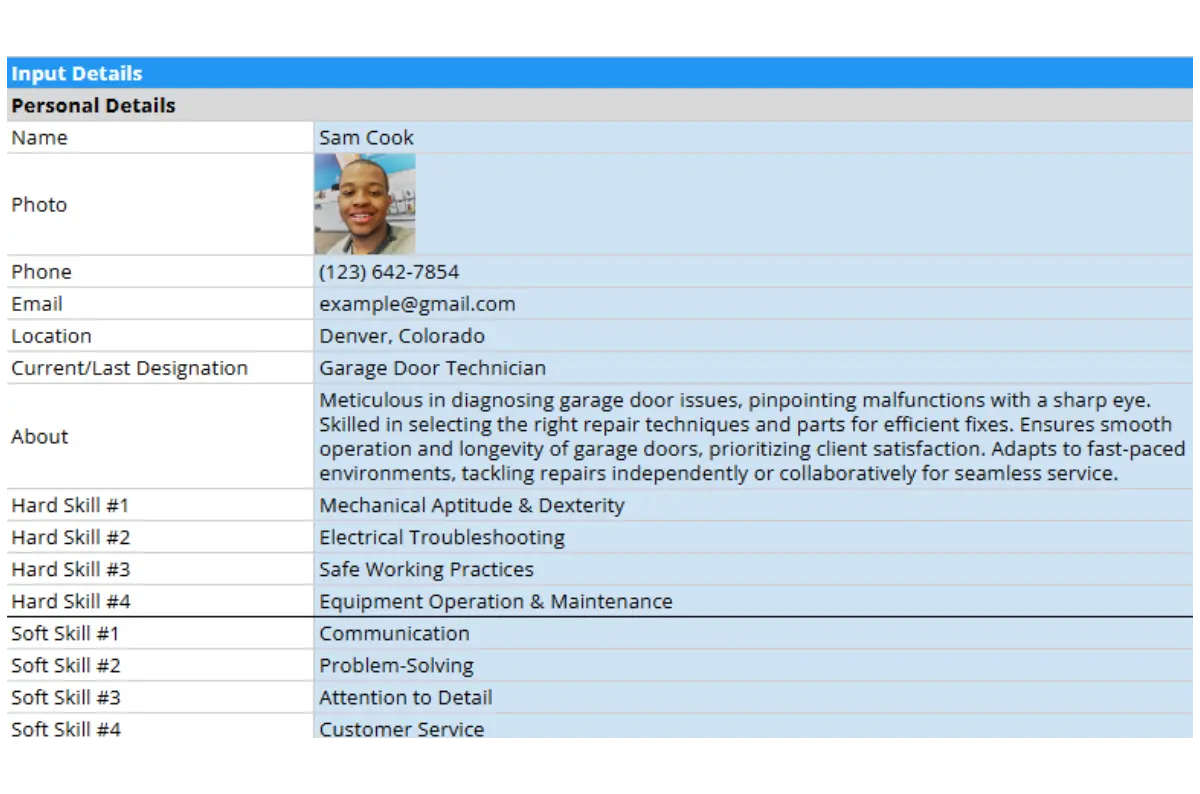 Creating accurate and thorough resume is essential for any garage door company. Having a simple, straightforward garage door resume template makes it a whole lot easier.