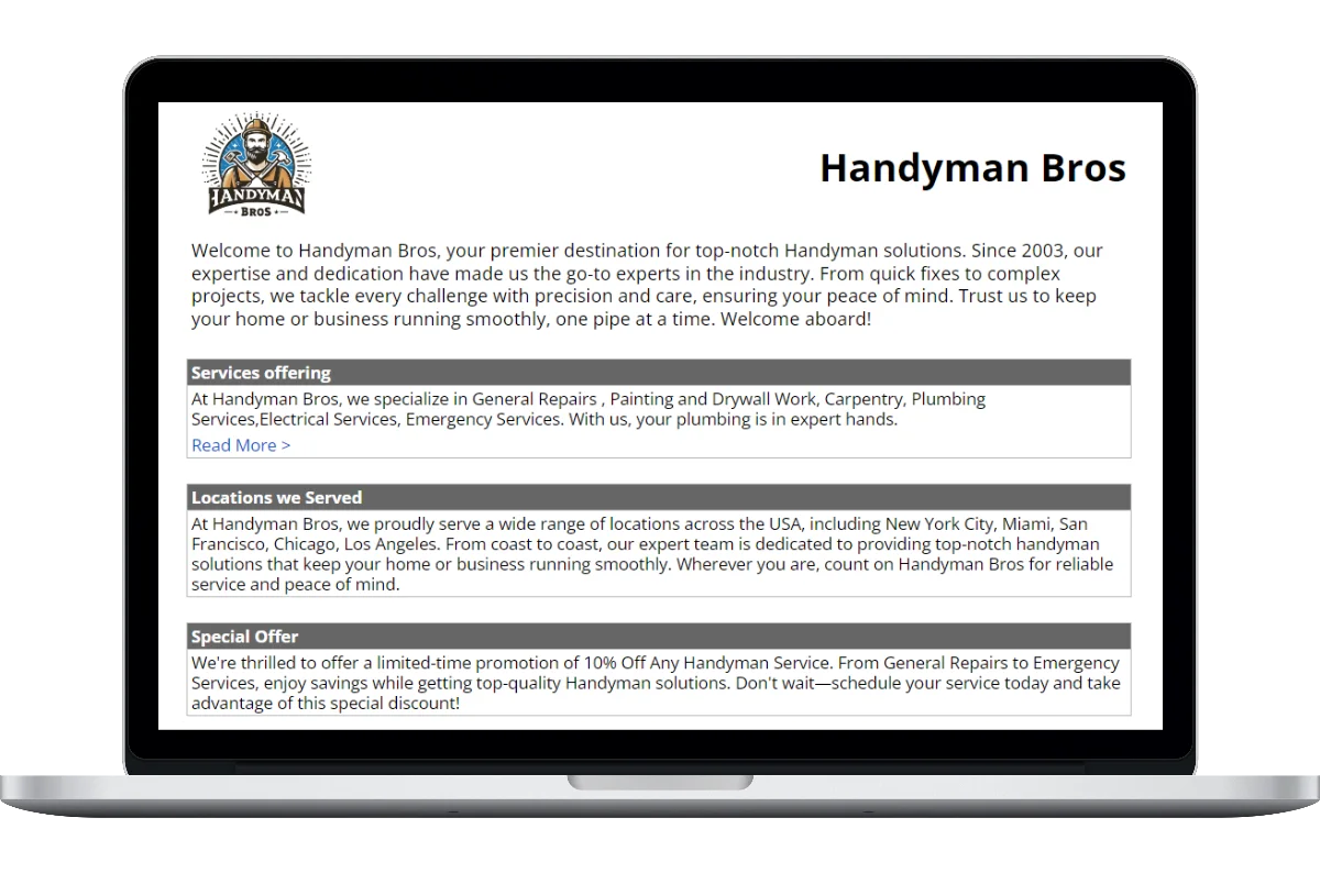 Creating accurate and thorough business website is essential for any handyman company. Having a simple, straightforward business website template makes it a whole lot easier.