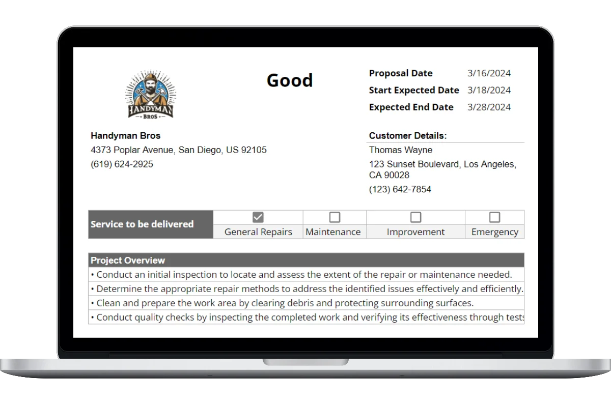 Creating accurate and thorough proposal is essential for any handyman company. Having a simple, straightforward proposal template makes it a whole lot easier.