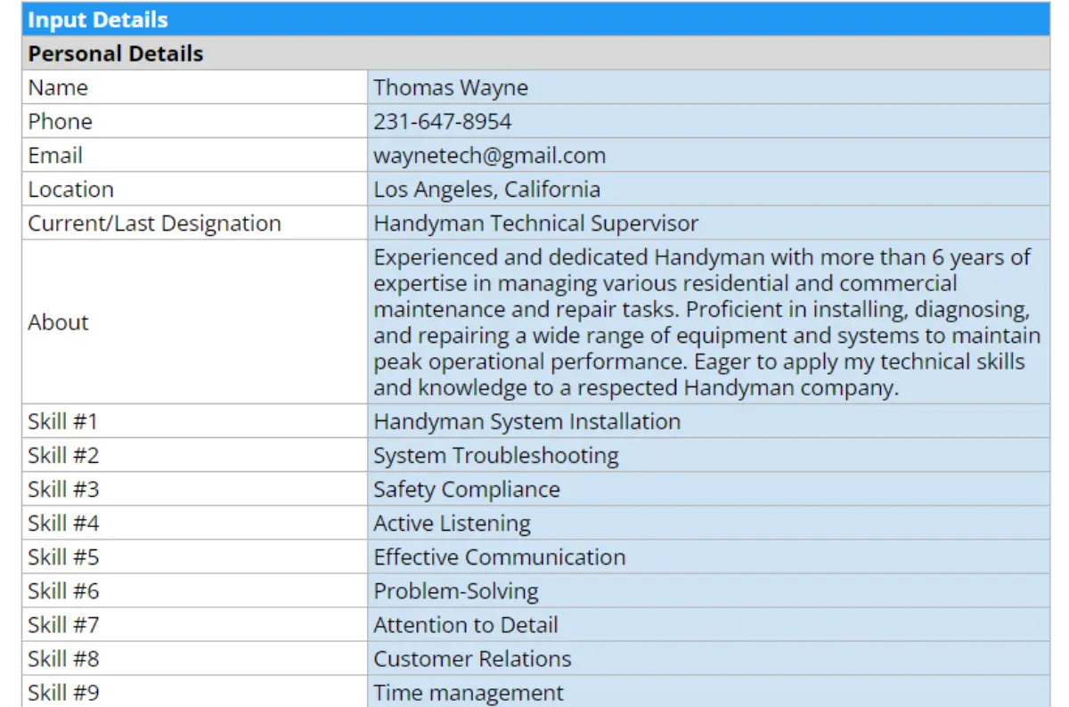 Creating accurate and thorough resume is essential for any handyman company. Having a simple, straightforward resume template makes it a whole lot easier.