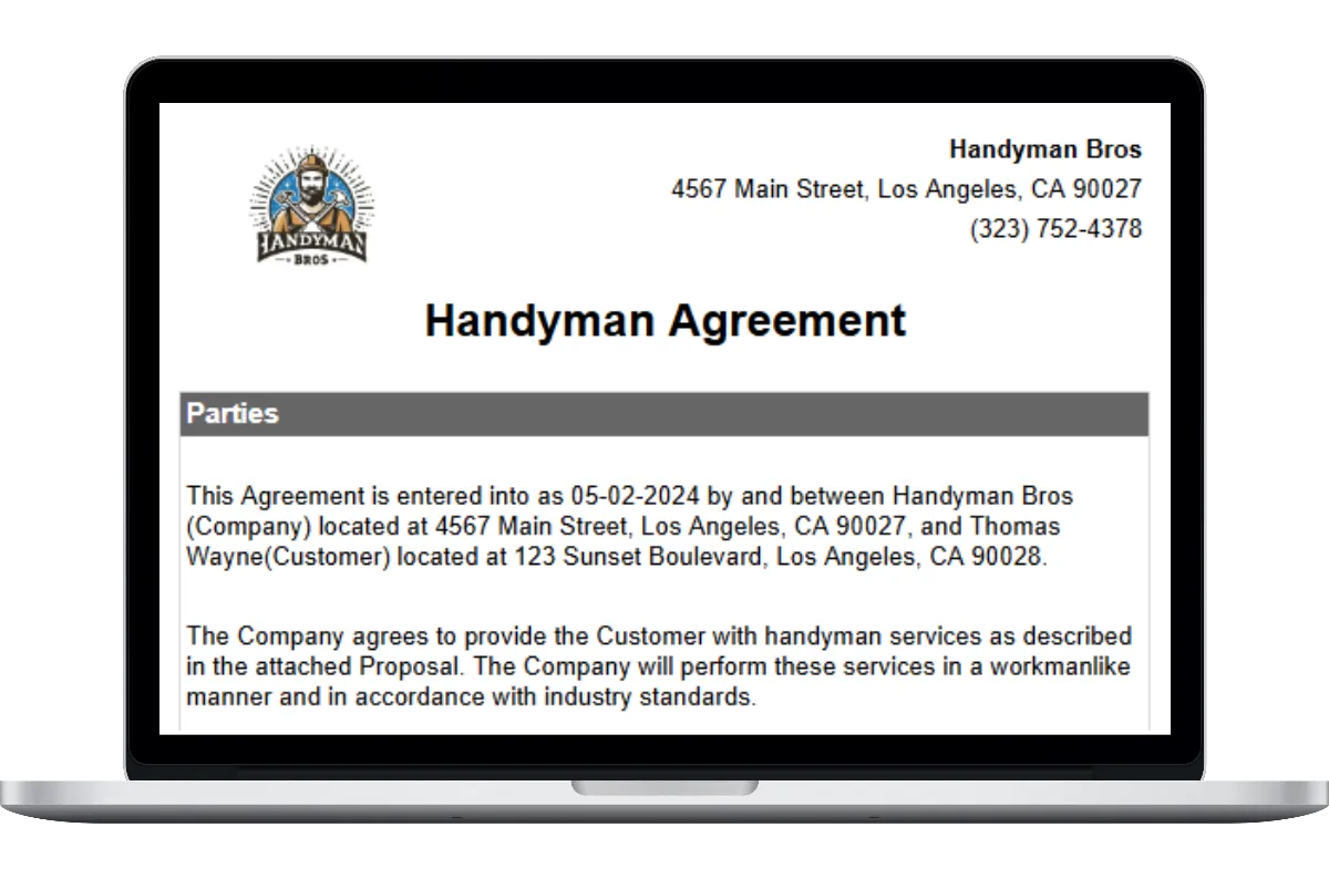 This handyman agreement template is a quick and easy way to make agreements, save time, and ensure operational efficiency.