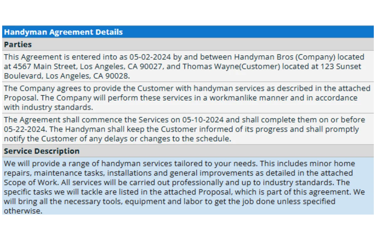 Creating accurate and thorough agreement is essential for any handyman company. Having a simple, straightforward handyman agreement template makes it a whole lot easier.