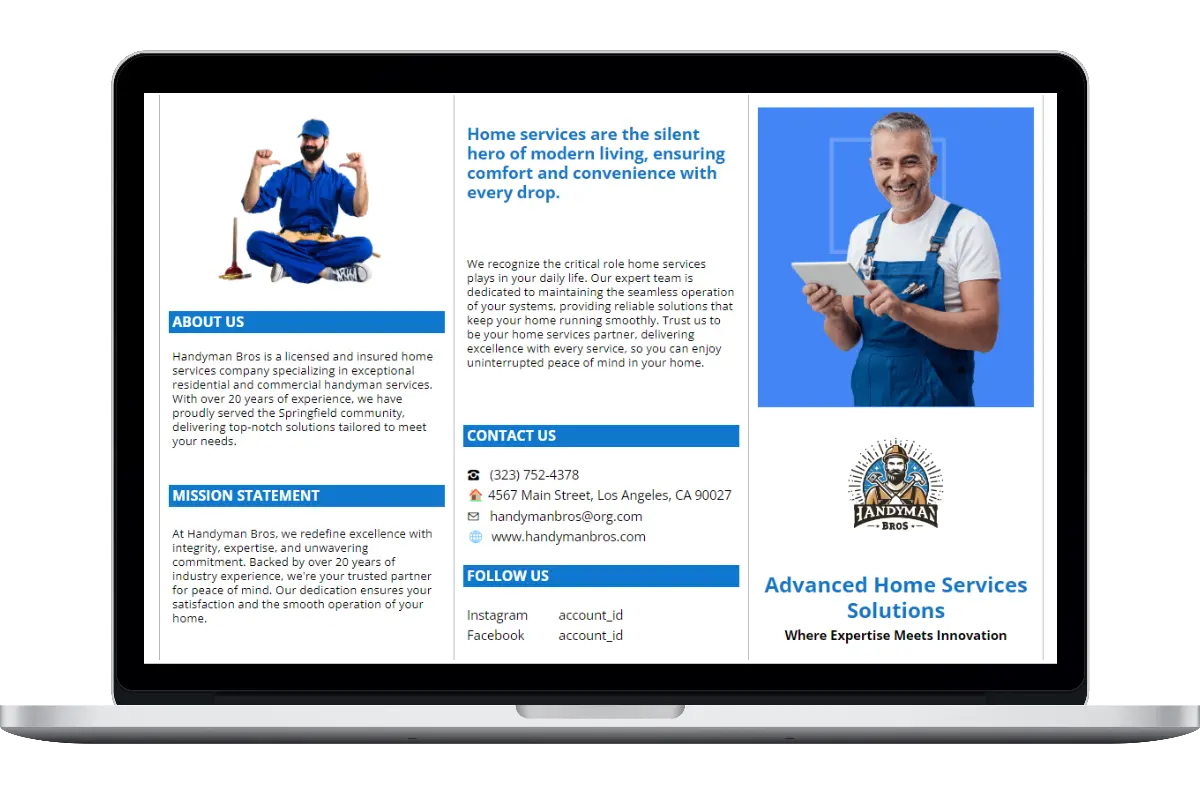 Creating accurate and thorough brochure is essential for any handyman company. Having a simple, straightforward brochure template makes it a whole lot easier.