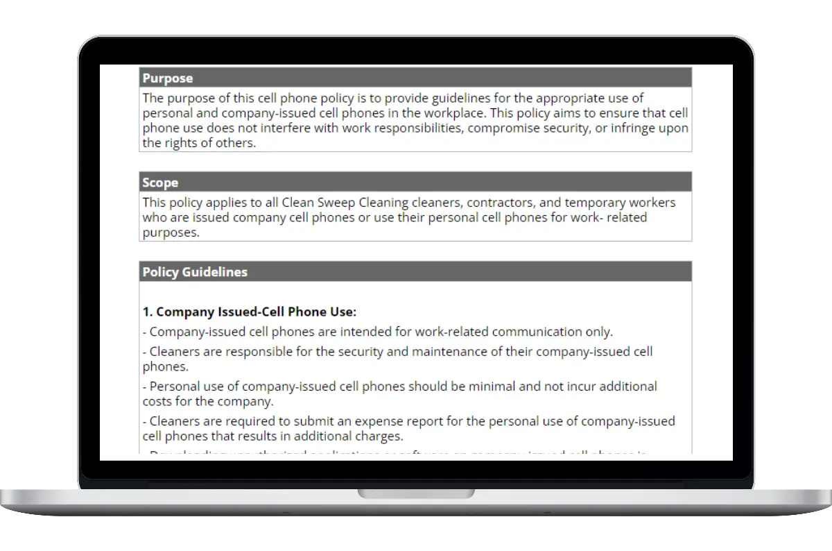 Here’s everything included in our cell phone policy template