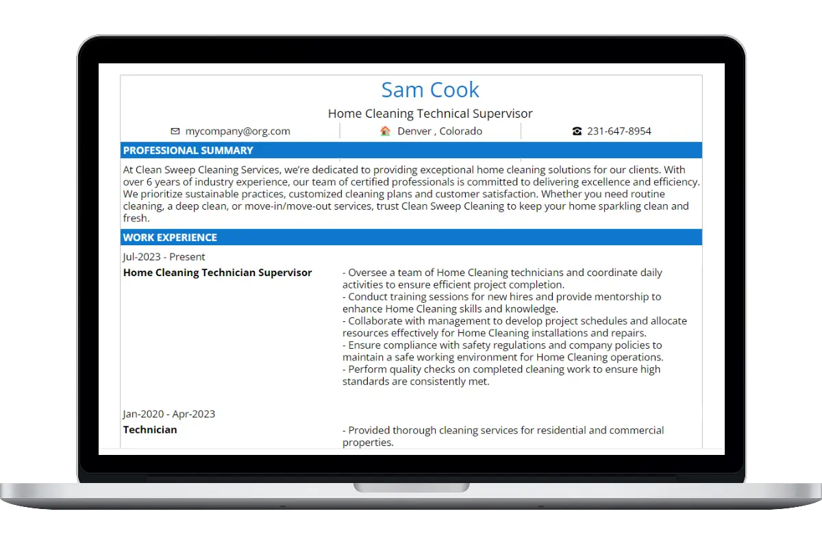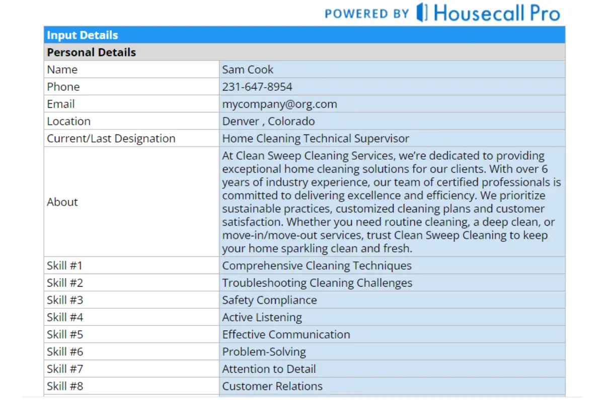 Creating accurate and thorough resume is essential for any home cleaning company. Having a simple, straightforward resume template makes it a whole lot easier.