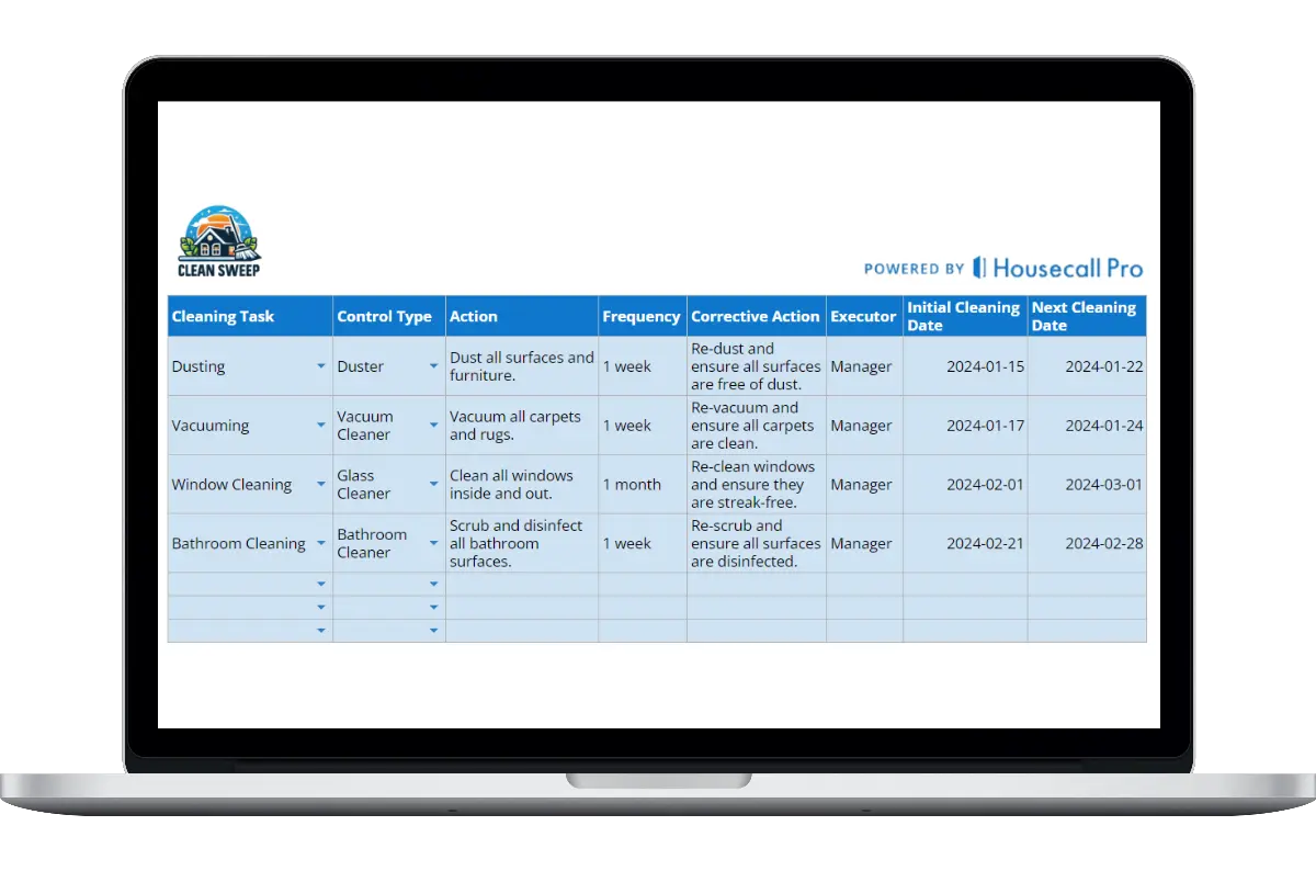 Creating accurate and thorough schedule is essential for any home cleaning company. Having a simple, straightforward schedule template makes it a whole lot easier.