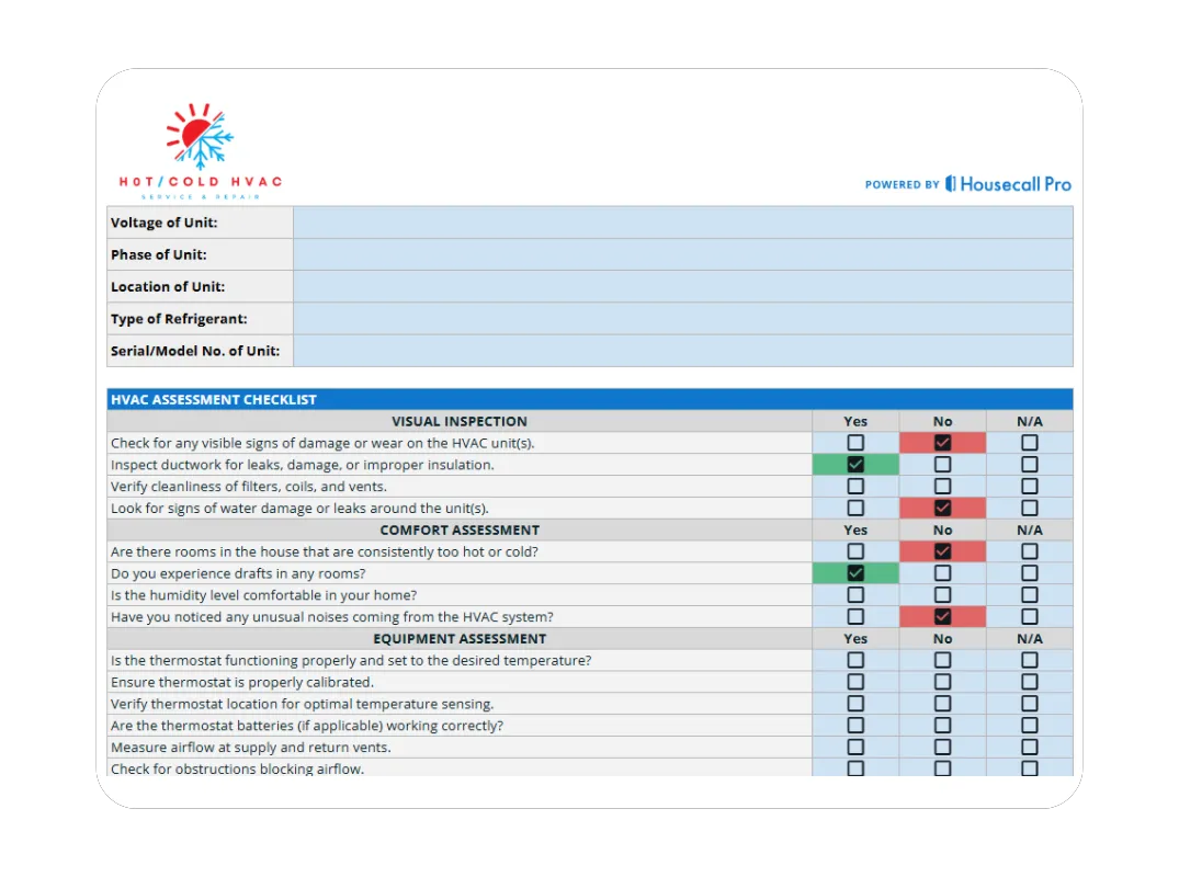 Creating accurate and thorough assessments is essential for any HVAC company. Having a simple, straightforward checklist template makes it a whole lot easier.