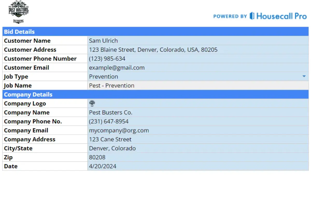 Creating accurate and thorough bid is essential for any pest control company. Having a simple, straightforward bid template makes it a whole lot easier.