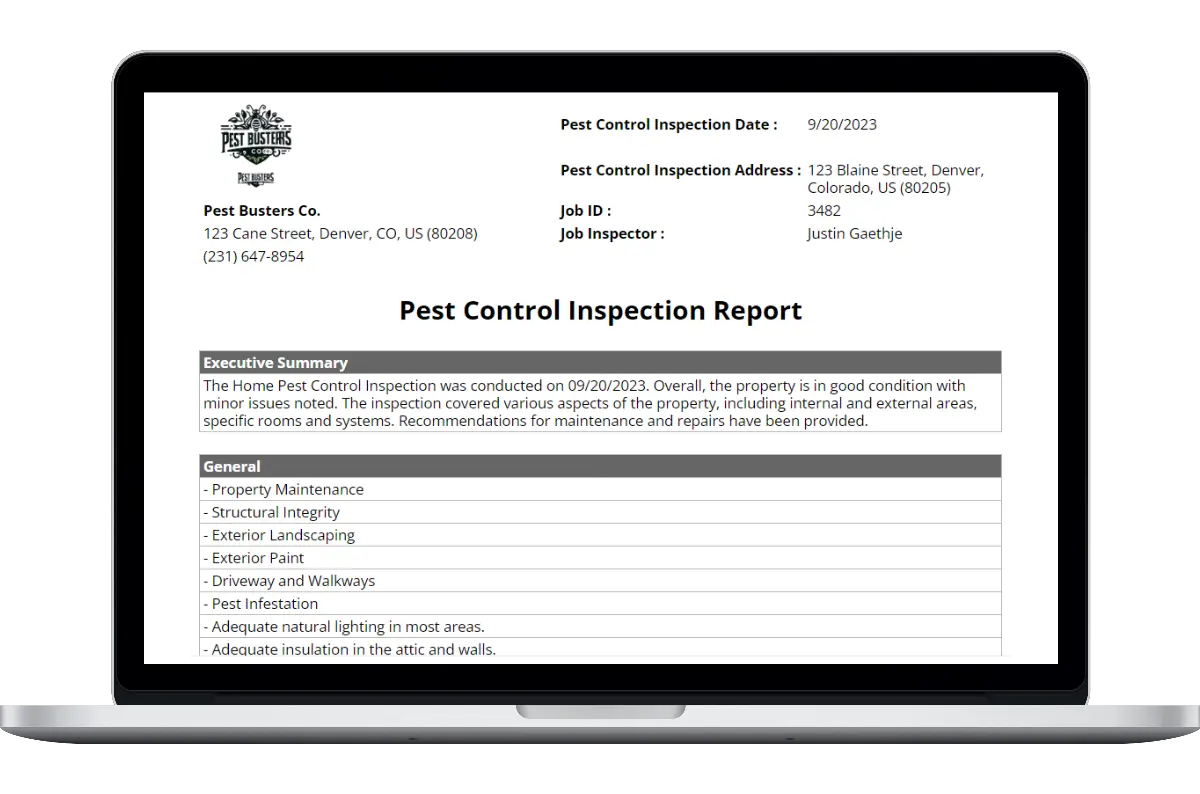 Our pest control inspection report template features: