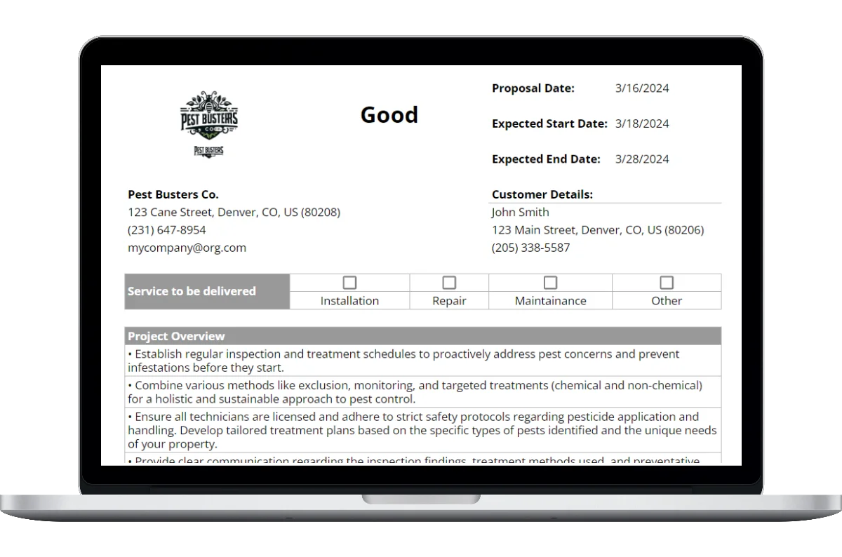Creating accurate and thorough proposal is essential for any pest control company. Having a simple, straightforward proposal template makes it a whole lot easier.