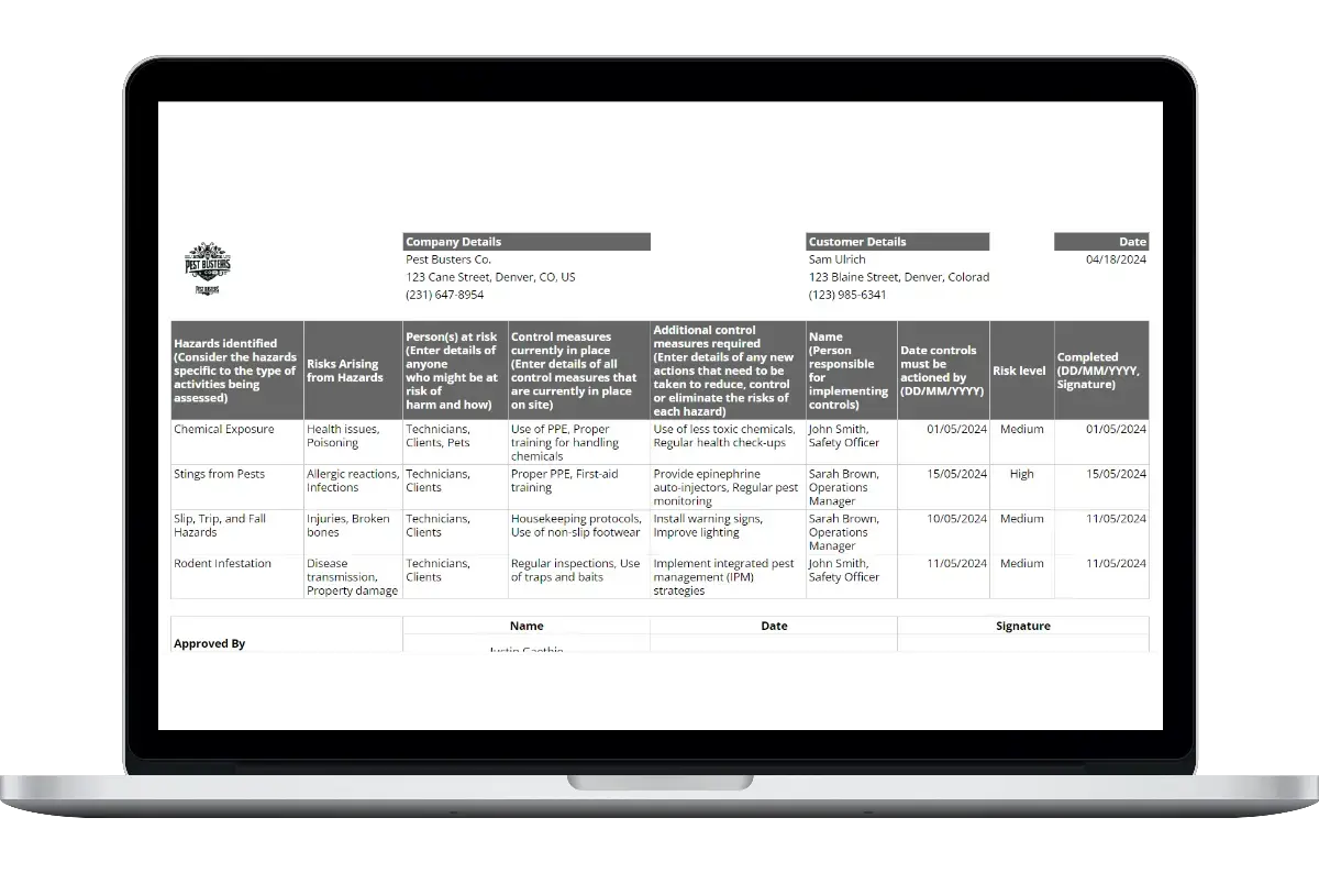 Our pest control risk assessment template features: