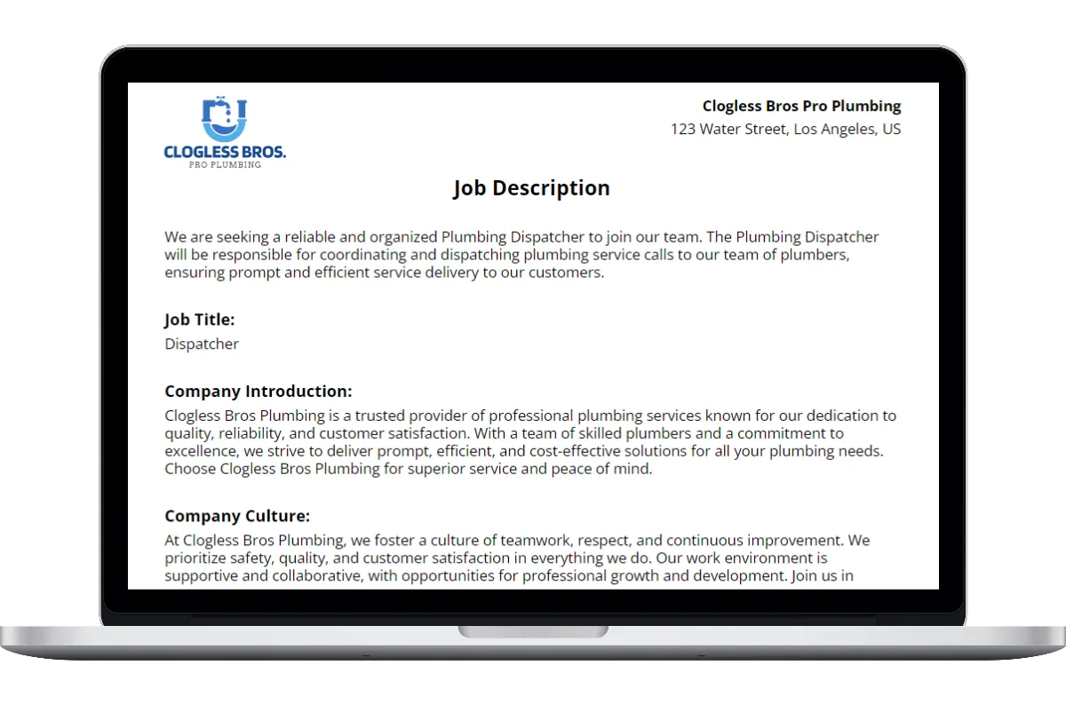 Creating accurate and thorough dispatcher job description is essential for any plumbing company. Having a simple, straightforward dispatcher job description template makes it a whole lot easier.