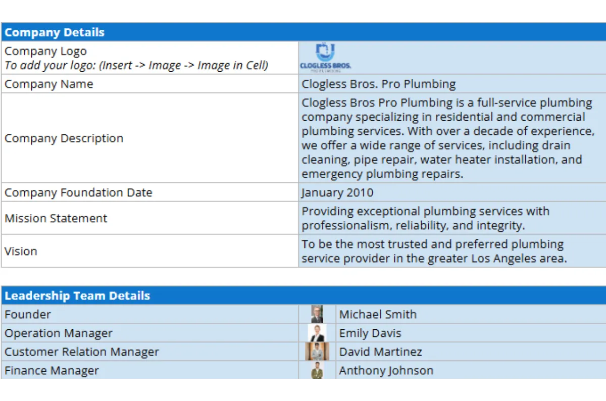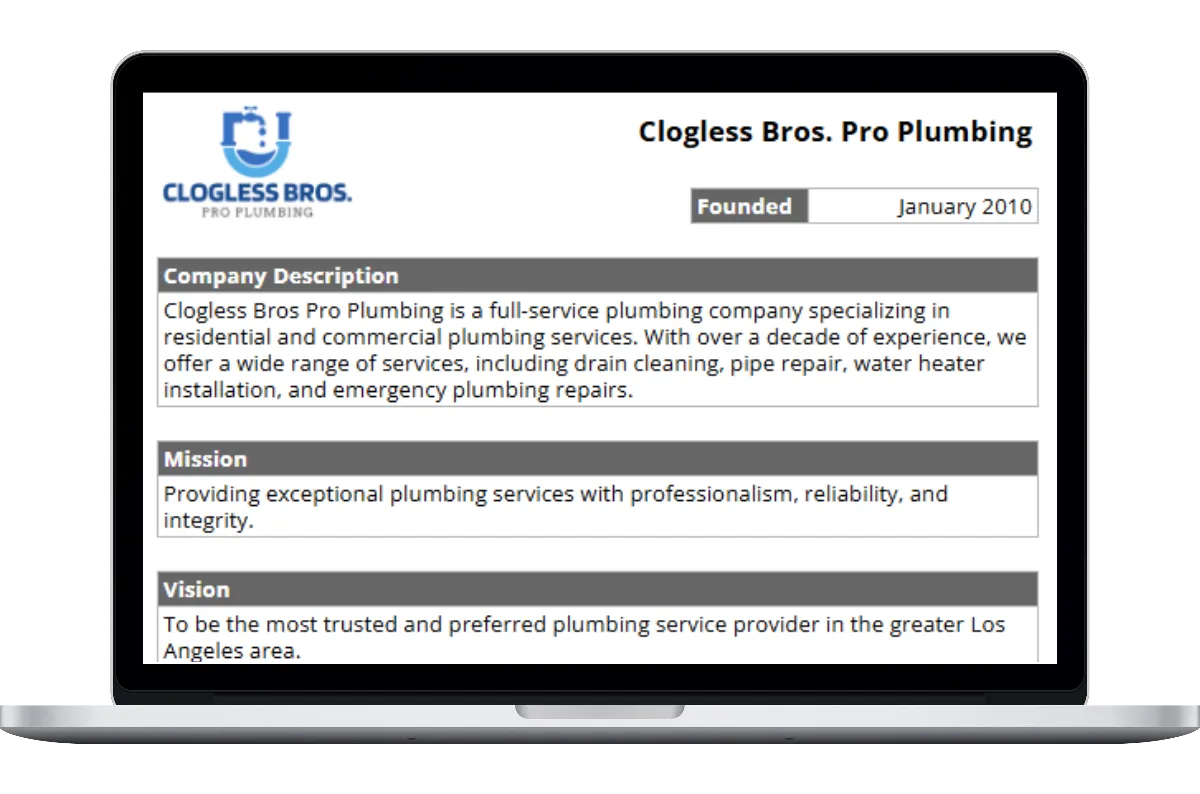 Creating an accurate and thorough business profile is essential for any plumbing company. Having a simple, straightforward plumbing business profile template makes it a whole lot easier.