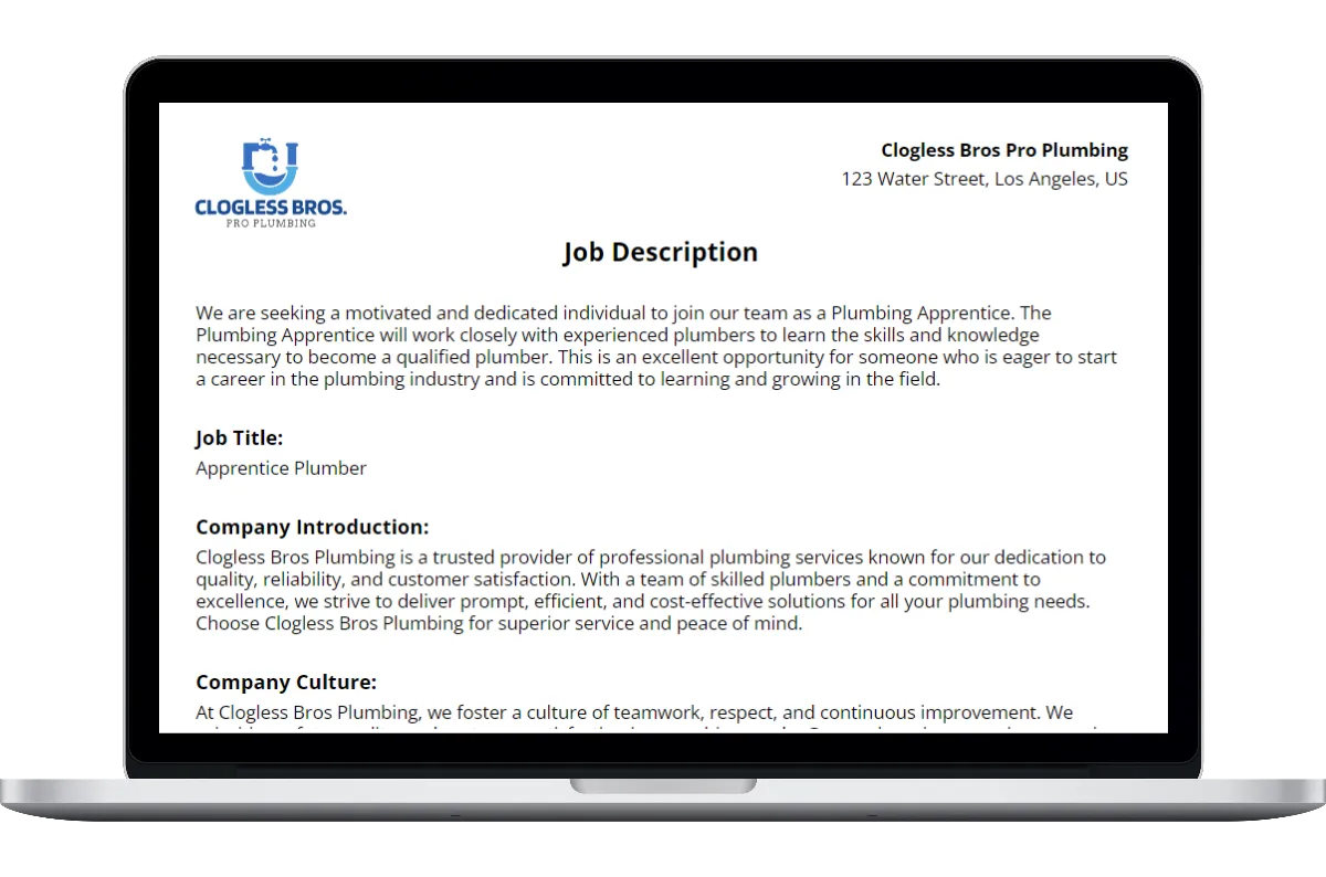 Creating accurate and thorough apprentice job description is essential for any plumbing company. Having a simple, straightforward apprentice job description template makes it a whole lot easier.