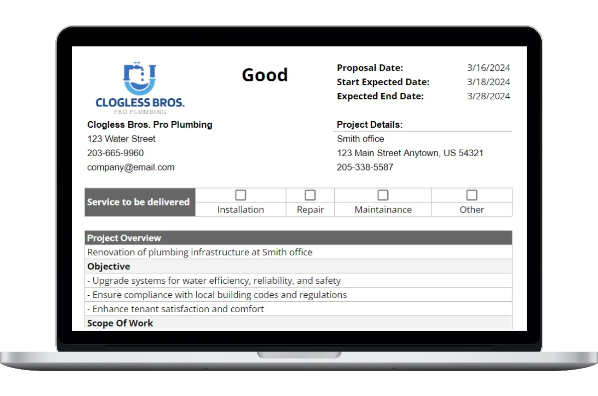 Creating accurate and thorough commercial proposal is essential for any plumbing company. Having a simple, straightforward commercial proposal template makes it a whole lot easier.