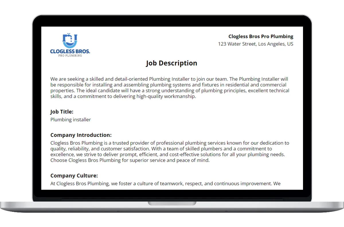 Creating accurate and thorough installer job description is essential for any plumbing company. Having a simple, straightforward installer job description template makes it a whole lot easier.