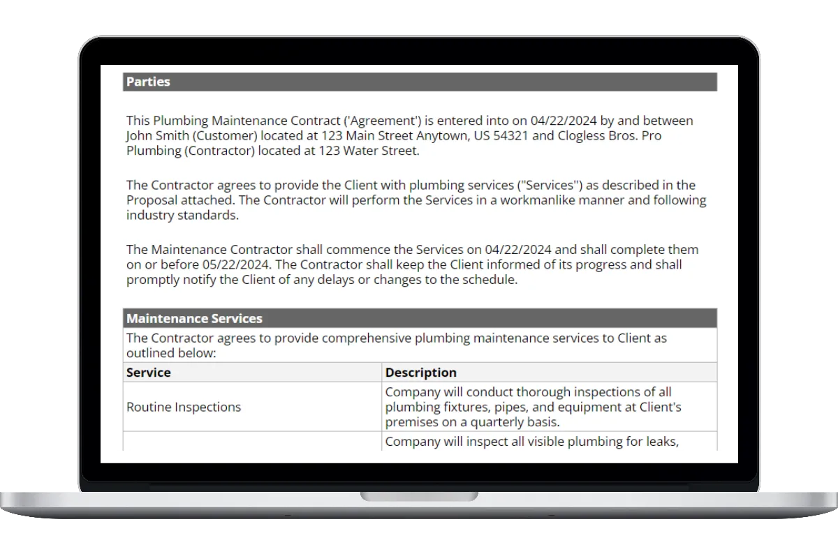 Creating accurate and thorough maintenance contract is essential for any plumbing company. Having a simple, straightforward maintenance contract template makes it a whole lot easier.