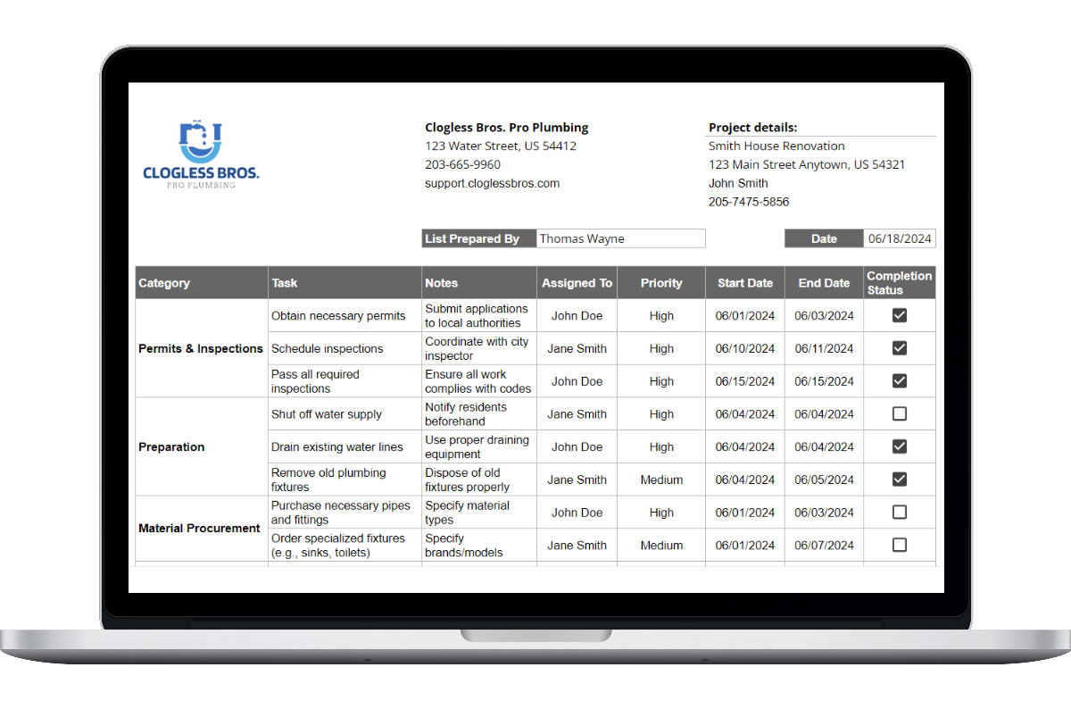 Creating accurate and thorough task list is essential for any plumbing company. Having a simple, straightforward task list template makes it a whole lot easier.