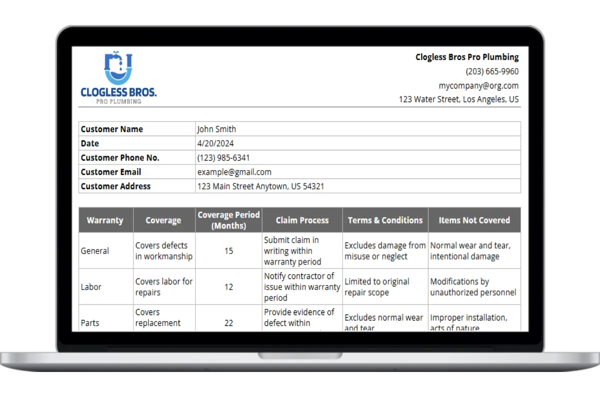 Creating accurate and thorough warranty is essential for any plumbing company. Having a simple, straightforward warranty template makes it a whole lot easier.