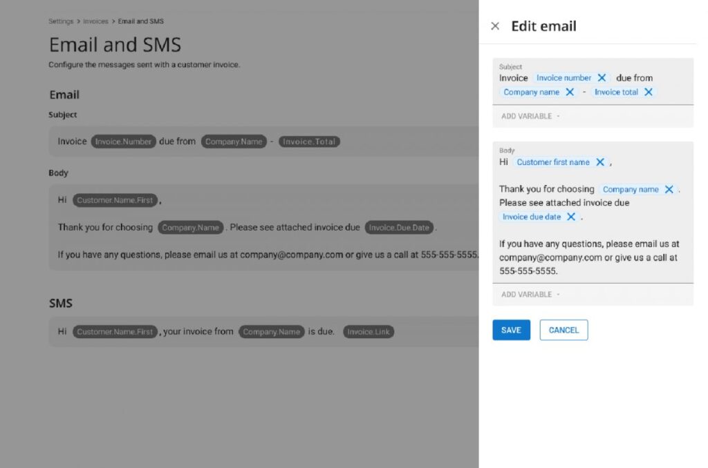 With the ability to set default email and SMS message content for your estimates and invoices you can: