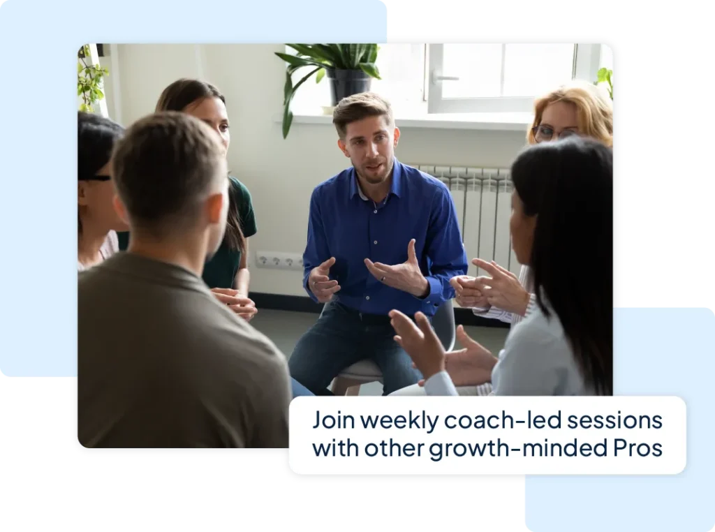 - Get accountability to stay on track with business goals. Regular check-ins keep you focused and moving forward.