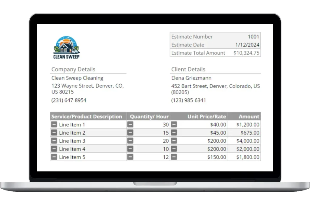 • Estimating and Invoicing: Generate professional estimates and invoices in seconds, saving time and improving cash flow with prompt billing.