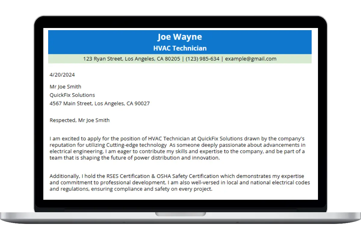 Our small business cover letter template features: