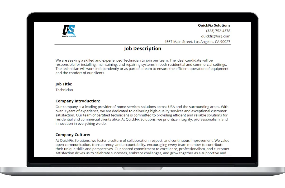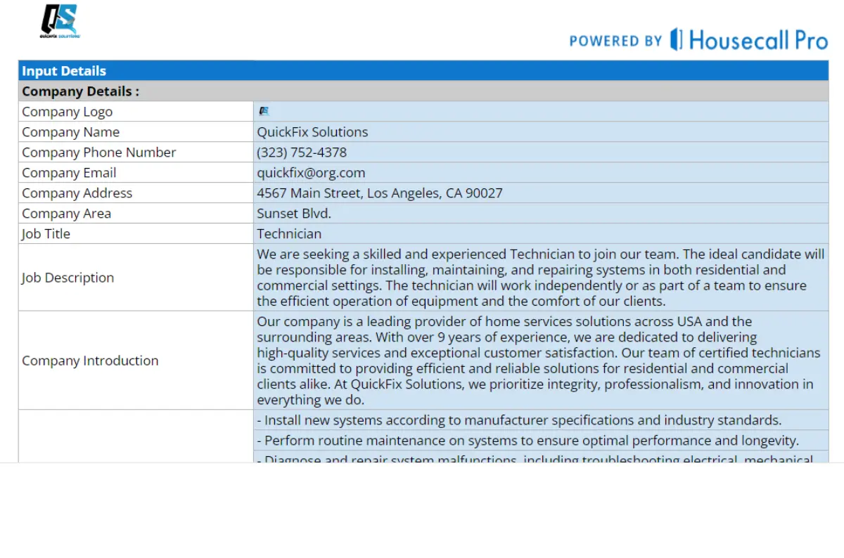 Built for Pros: Free Job Description Template from Housecall Pro