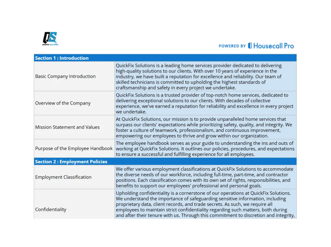 Built for Pros: Free Small Business Employee Handbook Template from Housecall Pro