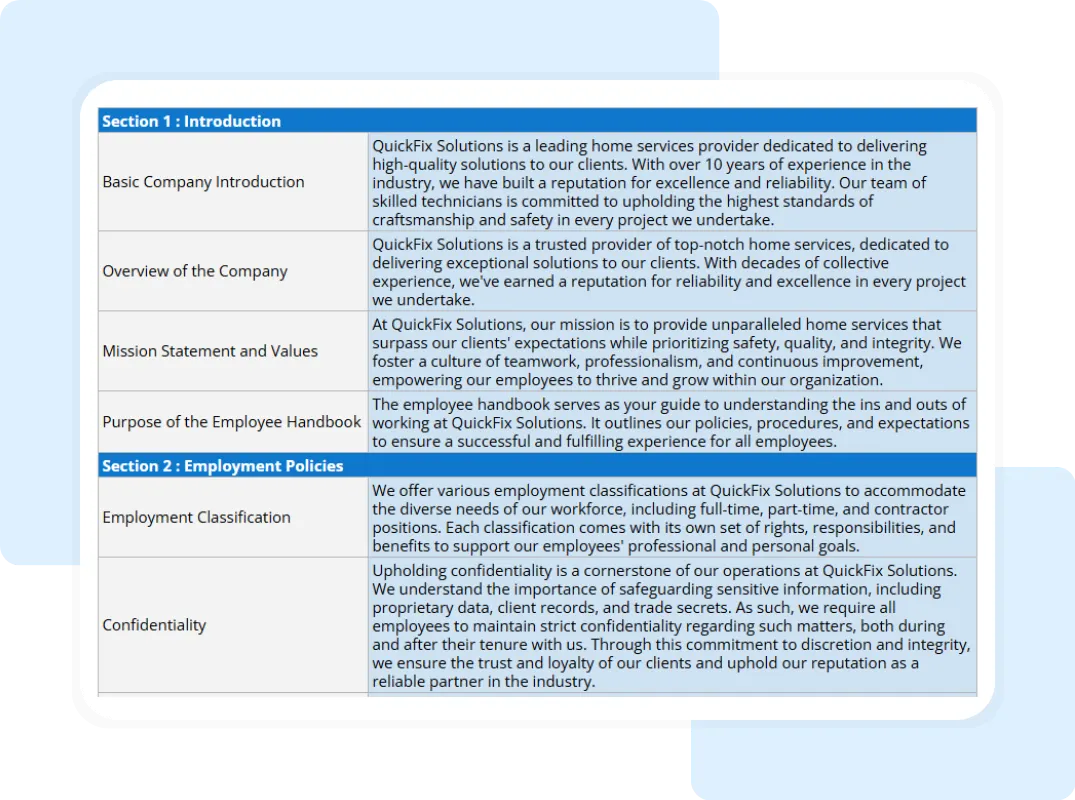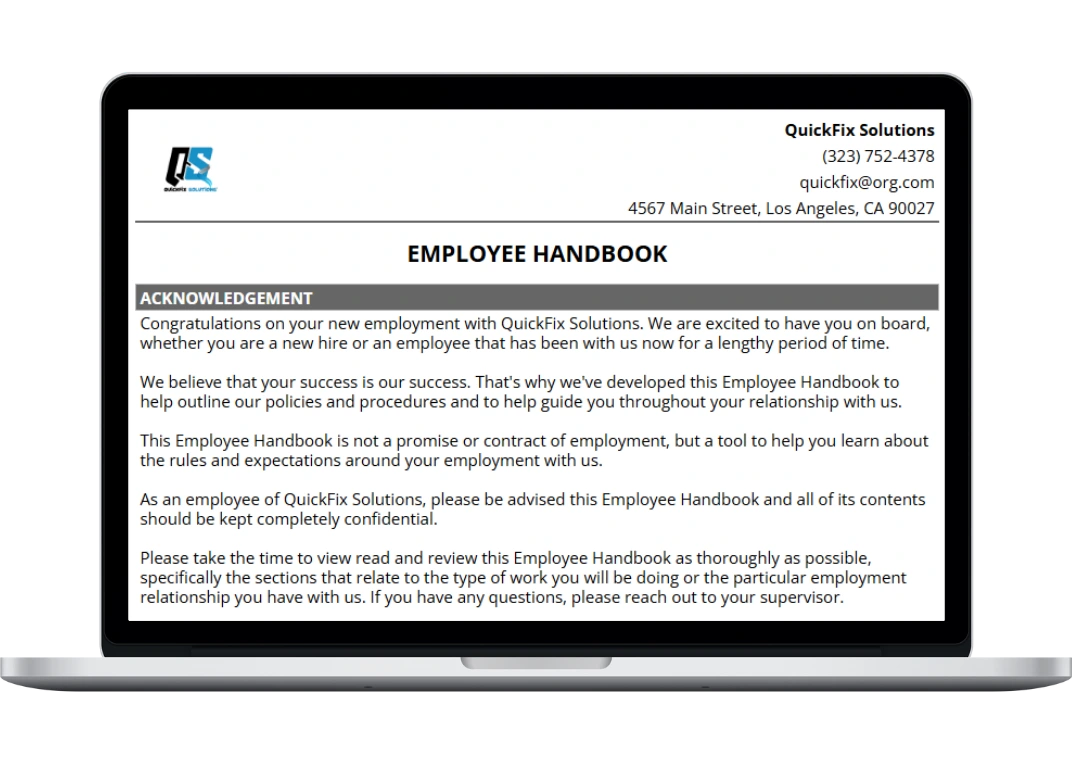 Our small business employee handbook template features: