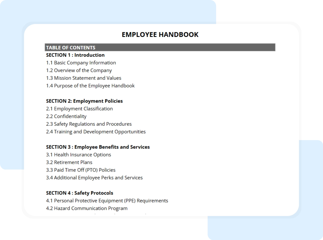 Here’s everything included in our employee handbook template