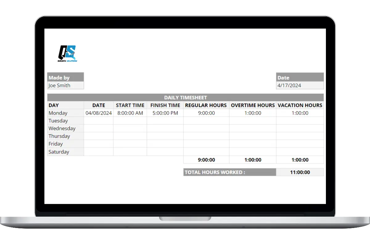 Here’s everything included in our timesheet template